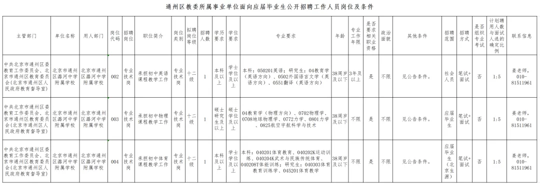 - 2025年北京通州区教委所属事业单位第二次面向毕业生招聘公告(236人) 2025-05-21