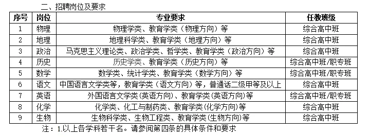 5以下岗位均要求符合晋江市合同教师聘用条件(大学本科及以上学历并获得相应学科高中或中职教师资格证书)。
