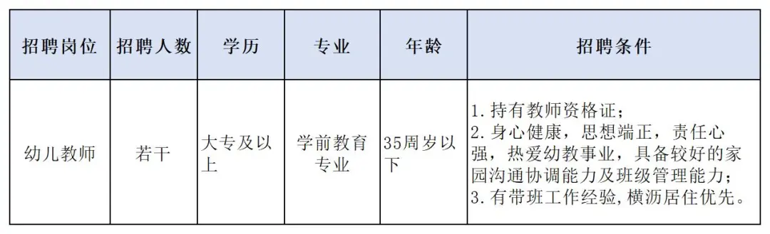 东莞市横沥镇第一幼儿园是一所公办幼儿园,因幼儿园发展需要,决定面向社会公开招聘专任教师,具体事项公告如下: