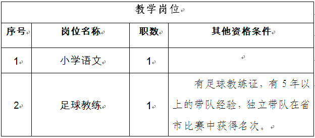 3、具备小学及以上教师资格,普通话等级达二乙及以上(小学语文为二甲及以上)。报考足球教练岗位的人员还需具备岗位表中的其他资格条件。