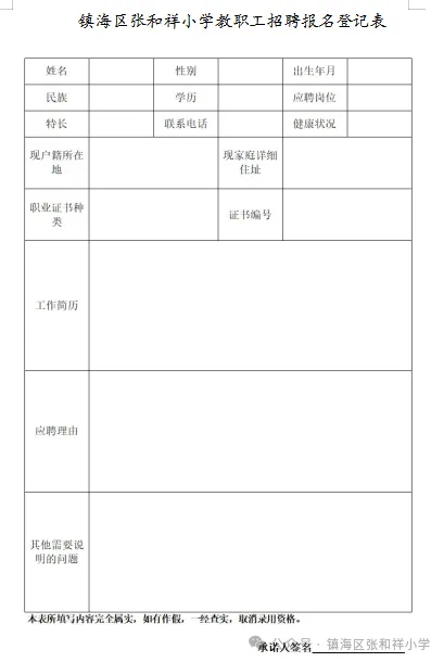 1.镇海区张和祥小学教职工招聘报名登记表